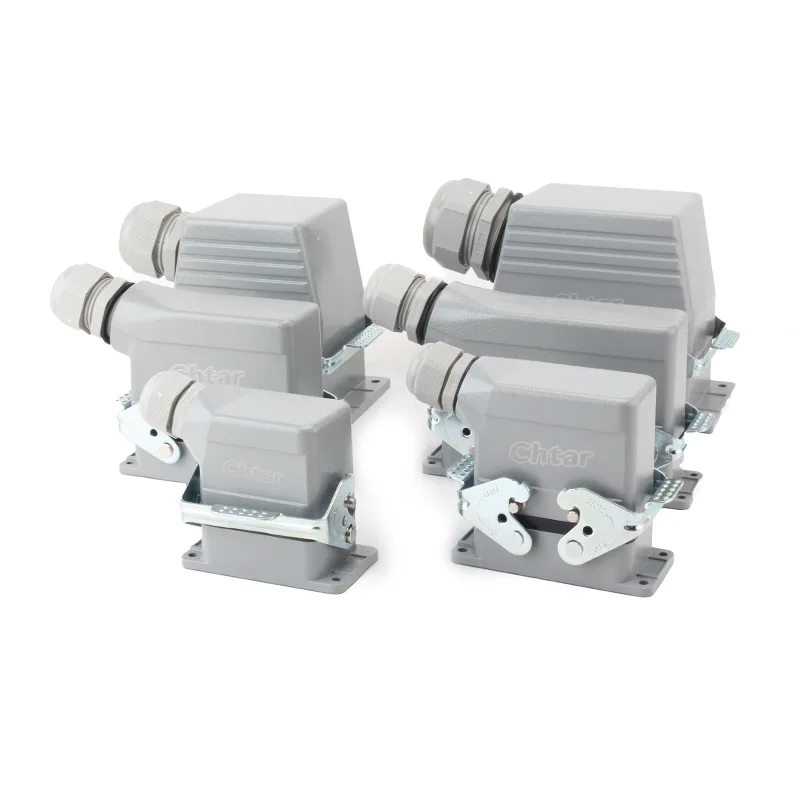 CHTAR द्वारे डिझाइन केलेले आणि उत्पादित केलेले टिकाऊ 24 पिन एजी हेवी ड्युटी कनेक्टर 24-पिन HE, HD, HEE, HDD आणि इतर हेवी-ड्यूटी कनेक्टरसाठी योग्य आहेत. कनेक्टर ॲल्युमिनियम मिश्र धातुपासून बनलेला आहे आणि RAL7037 राखाडी पावडरसह लेपित आहे. त्याचे ऑपरेटिंग करंट 16A आहे, ऑपरेटिंग व्होल्टेज 500VAC आहे, ऑपरेटिंग तापमान श्रेणी -40℃ ते +125℃ (-40℉ ते +257℉) आहे, प्लगिंग आणि अनप्लगिंग सायकल 500 पट आहे आणि संरक्षण ग्रेड IP65 आहे.
