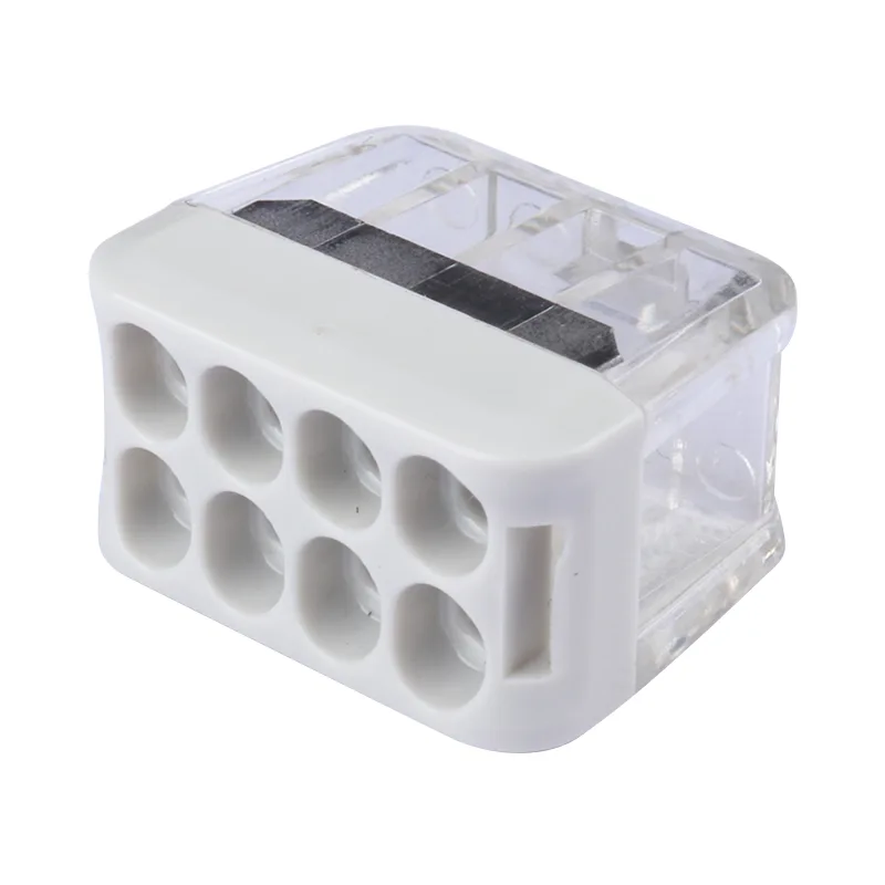 2P 3P 4P 5P 6P 8P फीड-थ्रू वायर क्विक कनेक्टर लीव्हरशिवाय प्रकाश आणि सॉकेट आणि प्लगच्या वायर कनेक्शनसाठी वापरत आहेत. क्विक वायर कनेक्टर ही एक सुरक्षित वायर जोडणी उत्पादने आहेत, आम्ही कामाचा वेळ आणि श्रम खर्च वाचवण्यासाठी देखभाल करणे सोपे आहे.