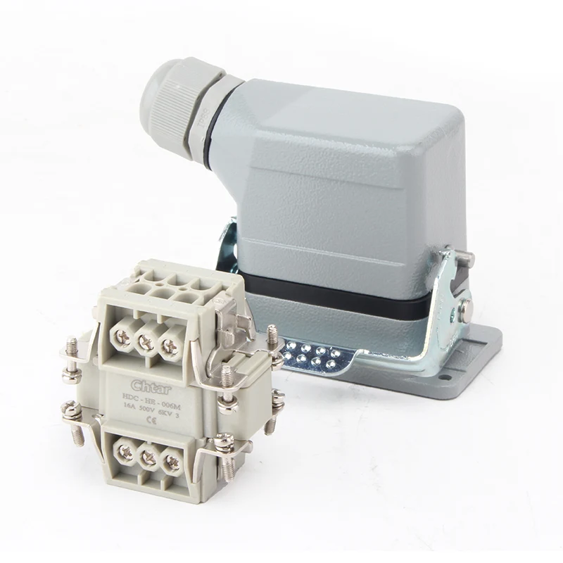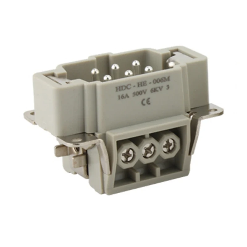 M/F 6 पिन घाला हेवी ड्युटी कनेक्टर 16A करंट अंतर्गत कार्यरत आहेत. तारांशी संपर्क साधण्यासाठी 16 पिन आहेत. हे वेगवेगळ्या कामाच्या परिस्थितीसाठी ऑफर करत आहे आणि स्वयंचलित उद्योगांमध्ये आणि मशीनच्या वायरिंग कनेक्शनच्या प्रकारांमध्ये लोकप्रिय आहे.