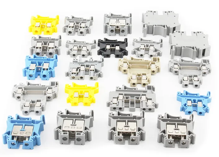 आमचा कारखाना वेगवेगळ्या पोझिशन्स आणि फंक्शन्ससाठी OEM शेल कलर कस्टमायझेशन ऑफर करतो. नवीनतम स्क्रू डीन रेल टर्मिनल ब्लॉक्स विविध बाजाराच्या गरजा पूर्ण करण्यासाठी राखाडी, पिवळा, लाल, काळा, हिरवा, तपकिरी आणि नारिंगी या मानक रंगांमध्ये उपलब्ध आहेत.