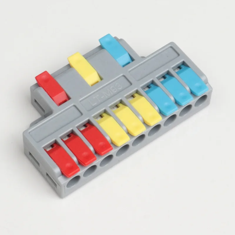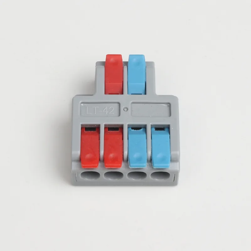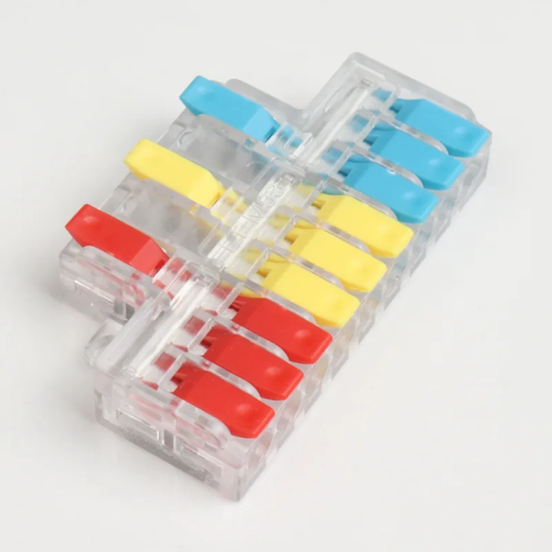 टू-इन फोर-आऊट मिनी स्प्लिसिंग वायर क्विक कनेक्टर्स विशिष्ट किंमतीचा फायदा देतात, कारण आकार कमी केल्याने उत्पादन खर्च लक्षणीयरीत्या कमी होतो.