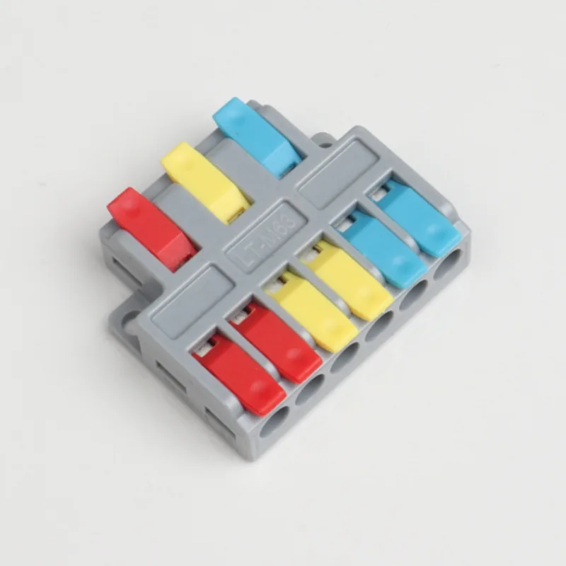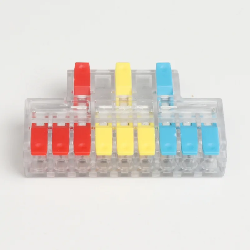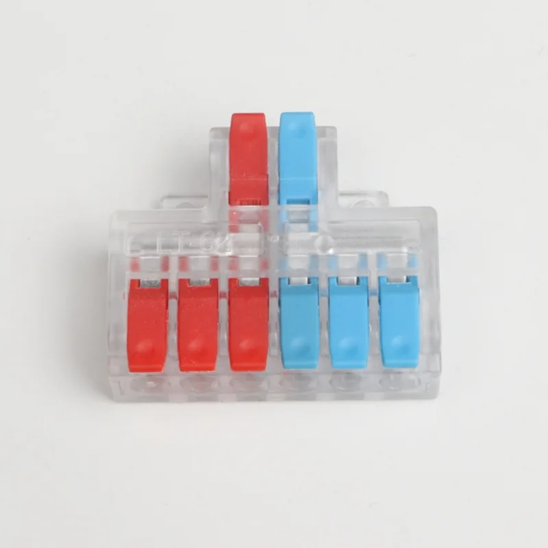 टू-इन फोर-आउट मिनी स्प्लिसिंग वायर क्विक कनेक्टर आमच्या सामान्य वितरण वायरिंग टर्मिनलपेक्षा लहान आकाराचे असतात. लघु आवृत्ती लहान वॉटरप्रूफ केसेसमध्ये वापरली जाऊ शकते. वायरिंगच्या दिशेतील फरक लक्षात घेण्यासाठी ते वेगवेगळ्या रंगांच्या हँडल विभाजनांनी बनलेले आहेत.